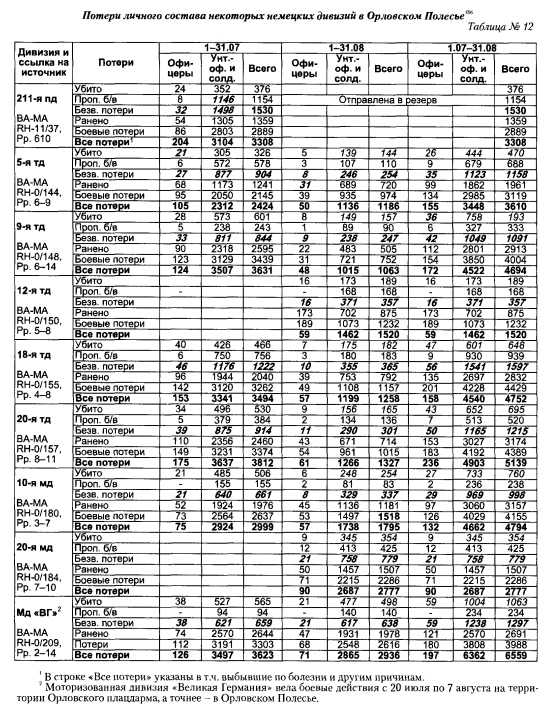 Еще поетри немецких дивизий на Оролвском высутпе
