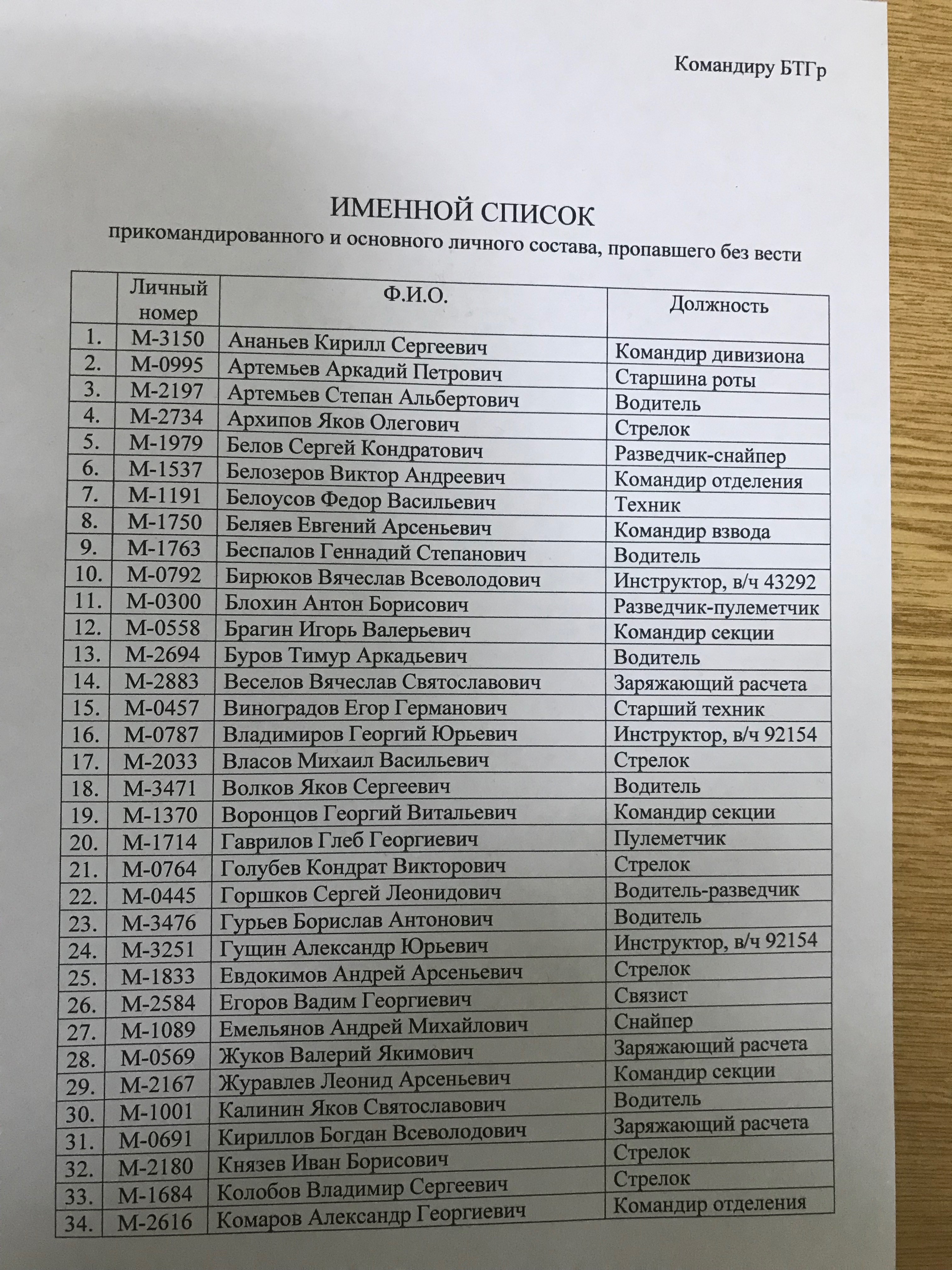Цитата (truecounter @ Фев 16 2018, 21:19) Странный список, только 2 Ивана и много редких имен. Такое впечатление, что генератор ФИО. В том то и дело.Он озаглавлен,как "список пропавших без вести",а мы из этого списка имеем(только я увидел мельком четыре фамилии.Резануло имя "Серапион"-ни когда не встречал |