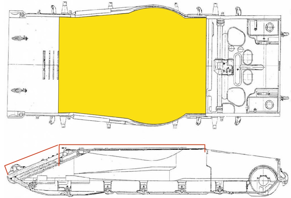 Сделал прорисовку, получается если срезать всю верхнюю плиту корпуса с башенным погоном и часть бронелиста, и наварить новую конструкцию, то вроде что то получается. Разумеется при этом они будут сидеть, а не находится в полулежачем положении как нынешний мехвод. Нажмите для увеличения -------------------- Духовность, Смирение, Кефир!